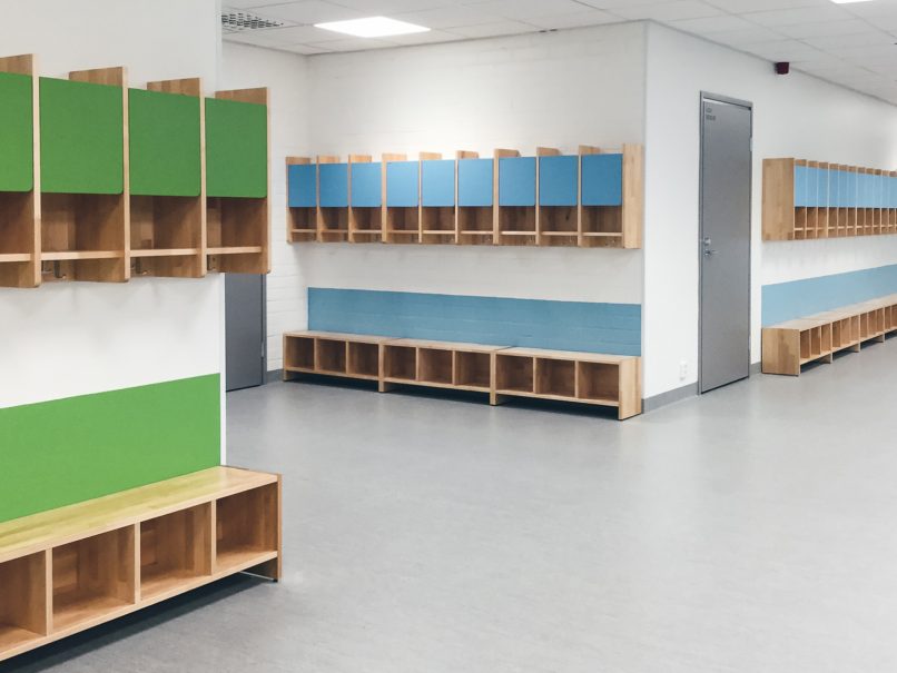 Koulu-uudistuksen mukainen opetustila-ajatus on muuttunut. Perinteisten luokkien lisäksi työtilana toimivat myös aulat. Tiloista tehtiin erityiset runsailla oleskelutilojen kalusteilla. Jokaisessa oleskeluaulassa käytettiin isoja, koko seinän mittaisia printtikuvia. Kalusteiden sävyt poimittiin kuvista. Tärkeänä asiana oli myös akustiikka, sekä tekstiilien kestävyys ja helppohoitoisuus.
